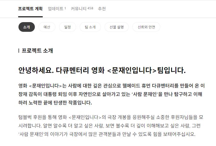 문재인 입니다 휴먼 타큐멘터리 텀블벅 후원