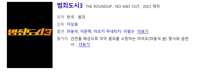 "범죄도사 3"은 2023년 5월? 상반기 개봉예정이며 "범죄도시 4" 또한 최근 필리핀에서 크랭크업 했다는 소식입니다.